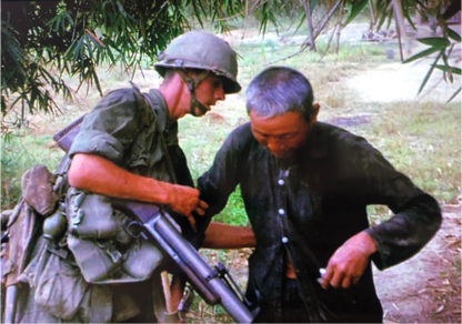 We had to confront random farmers and other civilians and check their belongings and see their IDs. Our squad leader was very intense and efficient with this. The locals seemed to know the drill and could say “me no VC” in English. I personally did not search anyone. I was just on watch for trouble, hopefully in the shade.