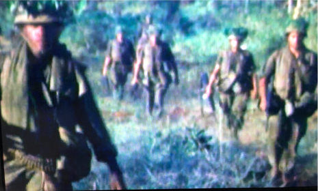The front column of our platoon ran into a small group of VC in the jungle and we were ordered to go “online” and move forward toward the enemy while firing our weapons.
