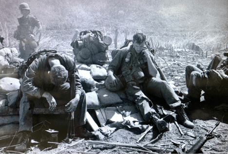 I picked a moldy, filthy cot where some sullen, angry marines were hanging out. They looked terrible. Emaciated, sores on their legs, awful looking feet and emotionally vacant. I got the usual hazing that was required by marine corps tradition. After all, to them, I was an FNG. (“Don’t make friends with a dead man”.)