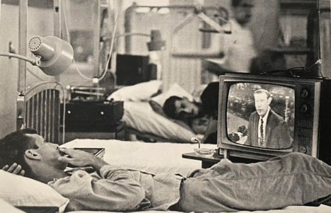 I delivered TVs to the bedside according to schedule. Then responded when my name was yelled in the ward. “PFC Curran, assist with tv… “. Change channel, adjust volume, set rabbit ears antenna to get reception. Then come back as scheduled and bring the tv to somebody else. If somebody fell asleep while they had a tv, I was told to yank it and give it to the next marine on the list. Some of the jarheads didn’t notice, and some complained to me, but there was really very little worth watching. It was just a way to confirm that you were back in the USA.