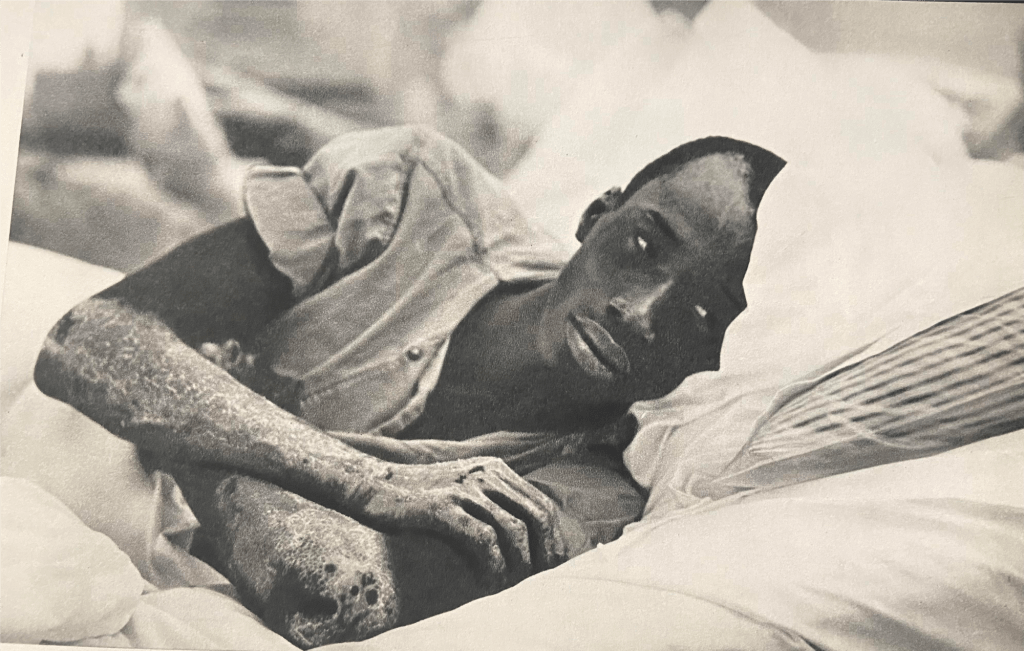 The nurses and corpsmen taking care of this poor man were so hard working and patient with him. They could occasionally get him to talk about where he lived and his family. He did not want his parents and siblings to see him in this condition. “Please let me die”.