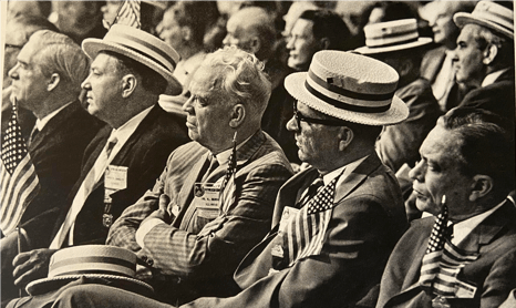 He was an ex-marine combat photographer during WWII and the Korean War. He was also a good writer. He showed up that evening after our dinner. The hospital photos, (other than my purple heart presentation), and the one delegate photo above, were taken by him.