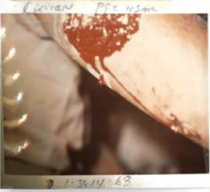 The doctor was very matter of fact and waited while the nurse gently pulled my bandages away from the wound. It was shockingly painful. The warning I had received was not exaggerated. I was stunned, thought it was over. Then the corpsman opened a package and handed the doctor a pair of shiny scissors. The doctor started cutting away at dead skin around the margins of my elbow, “debriding”. It was the worst pain I had ever felt in my life, (or would ever feel again). He was dissecting me without any additional pain medication. I was ready to faint and when he stopped I asked for some water. The doctor nodded to the corpsman who rolled up my pajama leg and stabbed me in the thigh with a syringe.